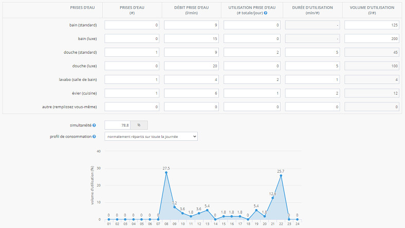 Le calcul vérifie si le niveau de confort est maintenu pour un jour du scénario le plus défavorable (= jour de forte consommation d'eau chaude).
